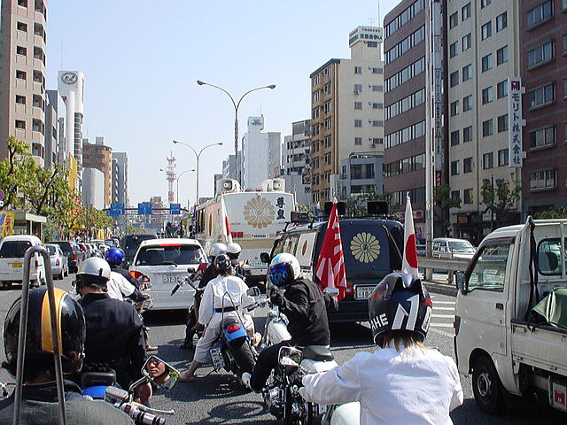 途中、右翼のパレードで激渋滞に巻き込まれ。。。難波にて