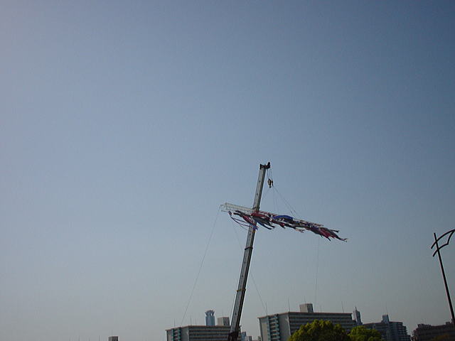 でっっっかいクレーンに吊るされた【こいのぼり】を、目にしました。